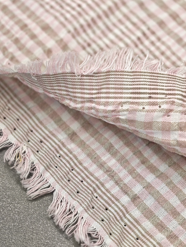 Nježno roza pamučna mečkana tkanina – sitni karo