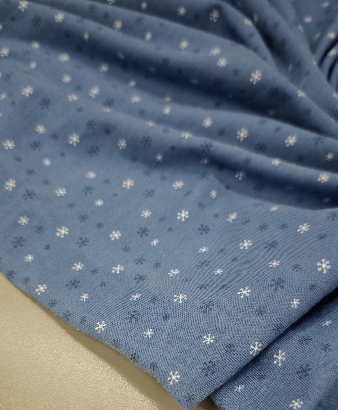Plavi pamučni jersey sa pahuljicama – mekan i udoban