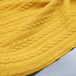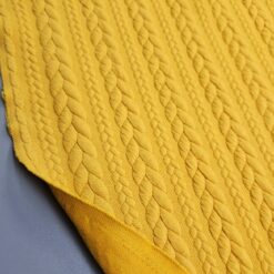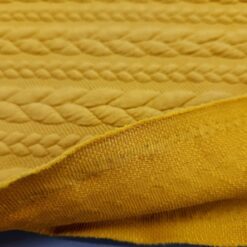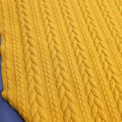 Ova prekrasna oker pletena tkanina s čuperastim uzorkom impresionira svojom toplinom, mekoćom i ugodnim dodirom. Strukturirana površina s izraženim čupercima daje tkanini jedinstven karakter, što je čini idealnom za moderne kardigane, veste, prsluke ili udobne zimske haljine.