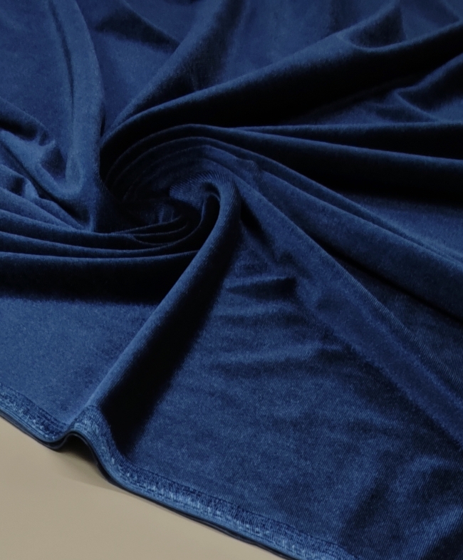 Ovaj mekani elastični pliš u plavoj boji oduševljava svojom nježnom, baršunastom površinom i iznimnom udobnošću. Zahvaljujući elastičnosti, savršeno se prilagođava pokretu i tijelu, što ga čini idealnim izborom za odjeću, pidžame, trenirke, dječje dekice, plišane igračke i modne dodatke.