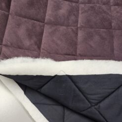 Prošivena bordo crvena dvostrana pamučna tkanina s izgledom brušene kože (550 g/m²) luksuzan je i izdržljiv materijal koji nudi mekoću i eleganciju. Idealna je za šivanje kaputa, jakni, torbi ili drugih modnih dodataka, jer kombinira kvalitetu i sofisticirani izgled.