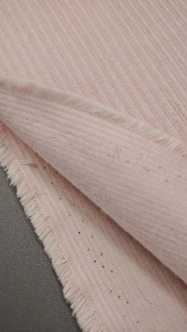 Ovaj prekrasni pamučni baršun u nježnoj ružičastoj nijansi impresionira svojim mekim dodirom i blagom elastičnošću, što pruža iznimnu udobnost nošenja. Zbog svoje gustoće i visokokvalitetne strukture, prekrasno se drapira i daje odjeći prestižan izgled.
