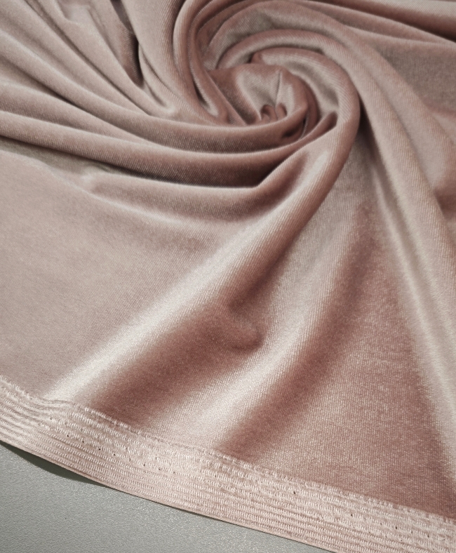 Ovaj mekani rastezljivi pliš u posebnoj alt pink boji je tkanina koja se odmah ističe – mekana, moderna i s taman pravom dozom topline. Njegova elastičnost čini ga savršenim prianjanjem uz tijelo, dok bogata tekstura pliša daje osjećaj udobnosti i mekoće koji kupci vole.