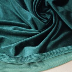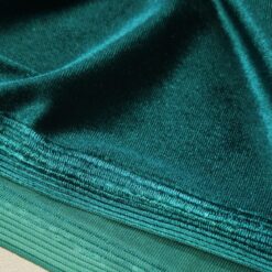Ovaj prekrasni smaragdni rastezljivi pliš impresionira svojim luksuznim izgledom i iznimnom mekoćom. Površina ima nježan baršunasti sjaj koji suptilno svjetluca sa svakim pokretom svjetlosti, dajući tkanini elegantan i prestižan izgled. Zahvaljujući svojoj elastičnosti, prekrasno pristaje tijelu, što ga čini idealnim izborom za haljine, suknje, tajice, topove ili modne dodatke, kao i za kostime, dekoracije i scenske scenografije.
