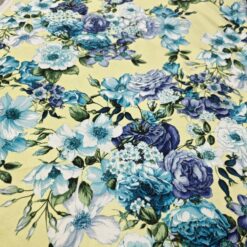 Vanilija žuti pamučni baršun s plavim cvjetnim uzorkom