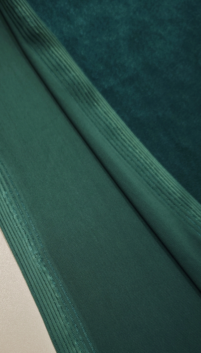 Mekana elastična tkanina u prekrasnoj smaragdnoj boji s baršunastim sjajem. Pliš je ugodan na dodir, lagano rastezljiv i lijepo pada. Idealan je za šivanje elegantnih haljina, suknji, tunika, majica ili dekorativnih detalja. Smaragdni elastični pliš unosi dozu luksuza i udobnosti u svaki komad odjeće.