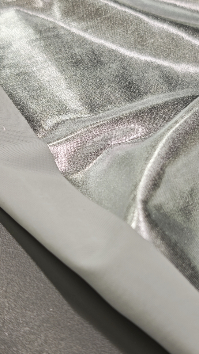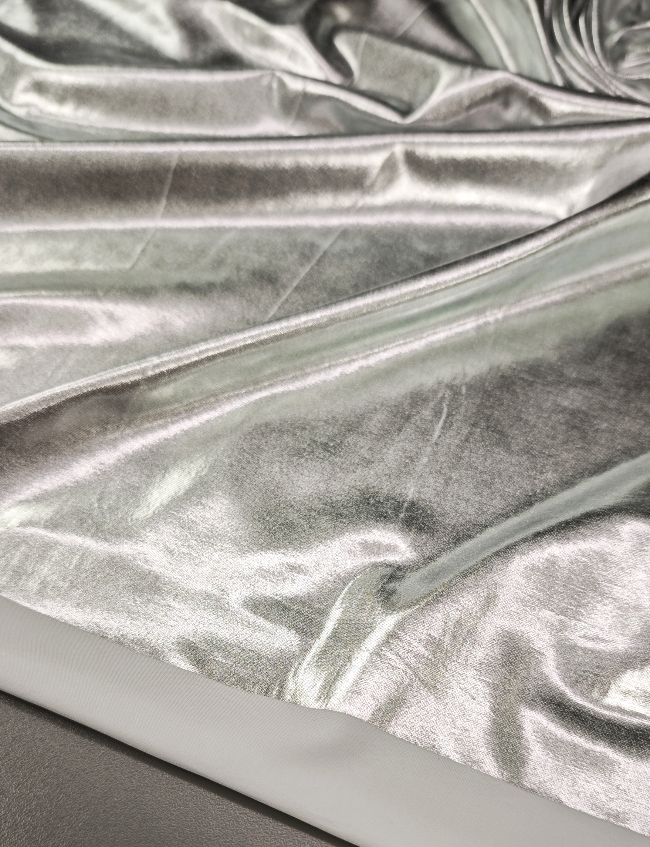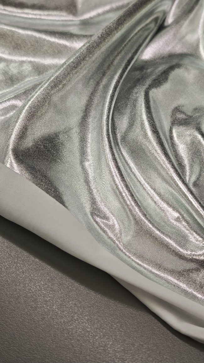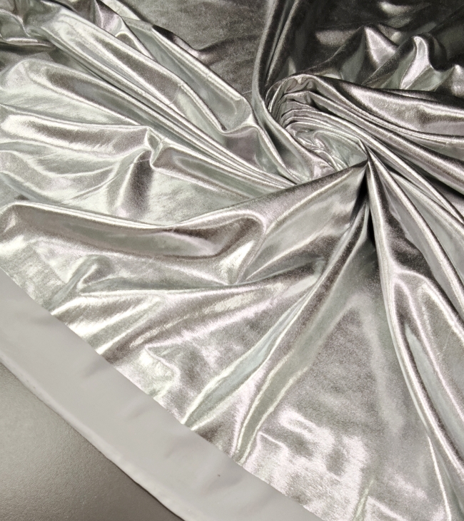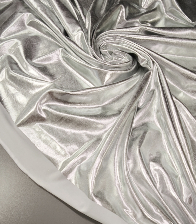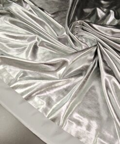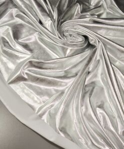 Ovaj srebrni jersey sa snažnim metallic sjajem idealan je kad želiš materijal koji donosi efekt glamura i fleksibilnost. Osim za modnu odjeću, savršen je i za dekorativne i kreativne primjene jer se lako oblikuje, rasteže i zadržava gladak, uredan izgled.