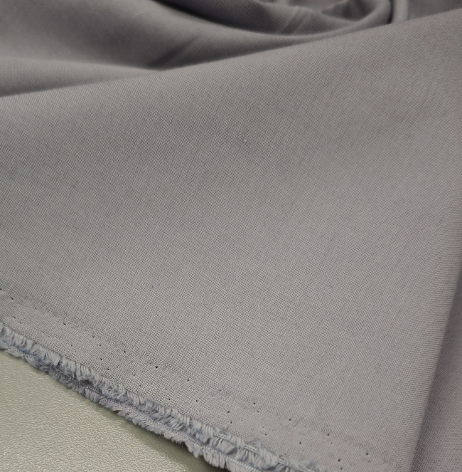 Ova siva tkanina u prirodno nježnom tonu izrađena je od mješavine 80 % pamuka i 20 % poliestera, što joj daje savršenu ravnotežu između udobnosti i trajnosti. Prozračna je, lagana i meka na dodir, ali se istovremeno manje gužva i lakše održava od čistog pamuka.