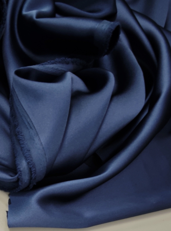 Otkrijte luksuzni sjaj i mekoću ovog američkog satena koji donosi profinjen izgled i udobnost u svakom komadu. Tamno plava boja daje posebnu dubinu i eleganciju, dok elastičnost tkanine osigurava savršeno prianjanje i udobnost pri nošenju.