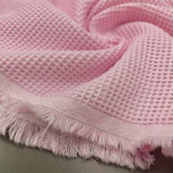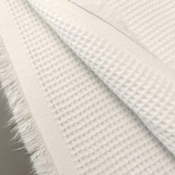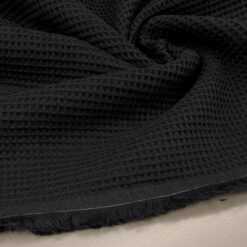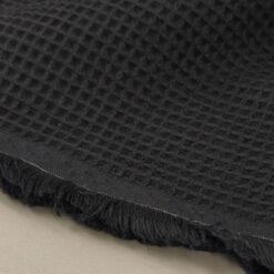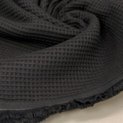 Crna tkanina za vafl s karakterističnom reljefnom, četvrtastom strukturom. Mekana na dodir, prozračna i upijajuća, a opet dovoljno kompaktna za svakodnevnu upotrebu. Zbog teksture dobro drži oblik i daje proizvodima prepoznatljiv, uredan izgled.