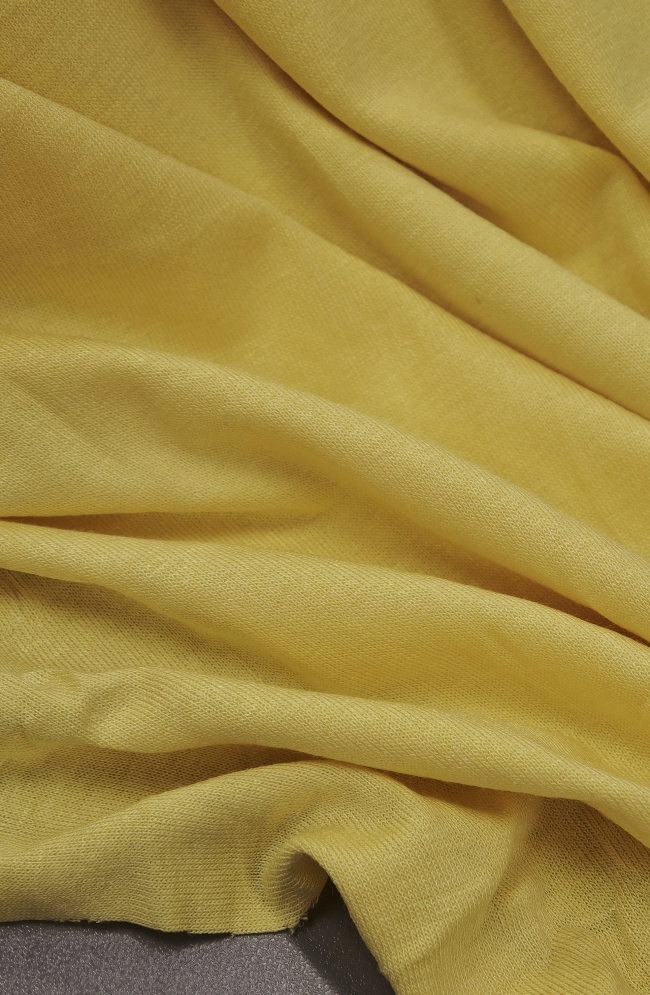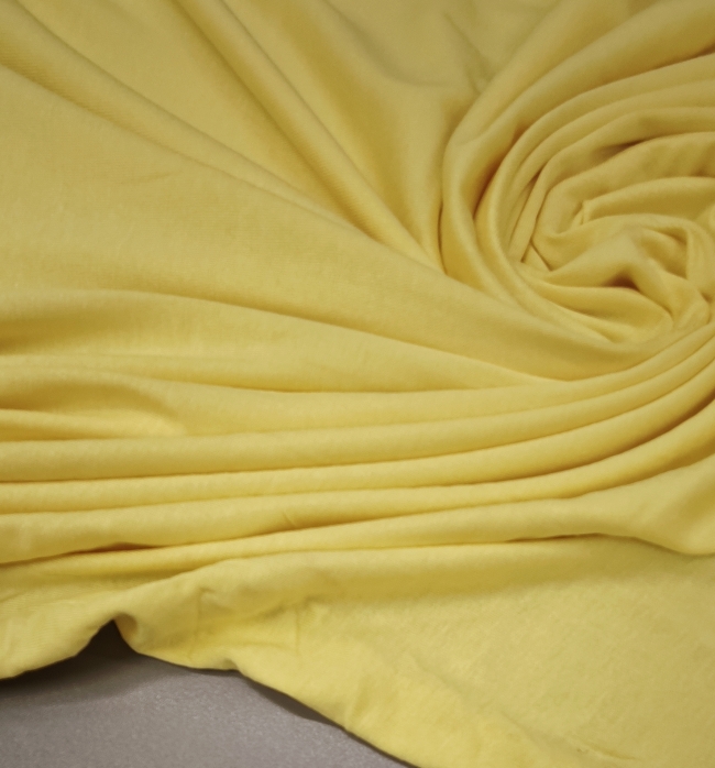 Jersey od viskoze s dodatkom elastana ugodno je mekan na dodir, lijepo pada i udobno pristaje tijelu. Zbog svoje elastičnosti idealan je za šivanje majica, haljina, tunika, tajica i druge udobne odjeće za svaki dan. Vrhunski izbor za sve koji traže kvalitetan materijal u sunčano žutoj nijansi.