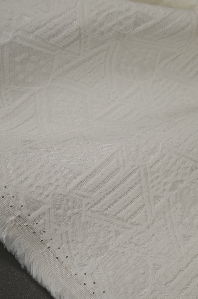 Ovaj bijeli pamučni žakard oduševljava svojom elegantnom teksturom i prirodnom mekoćom. Tkanina je ugodno podatna, prozračna i dovoljno čvrsta da zadrži formu – idealna za haljine, suknje, sako odijela, bluze, dekorativne navlake i modne detalje.