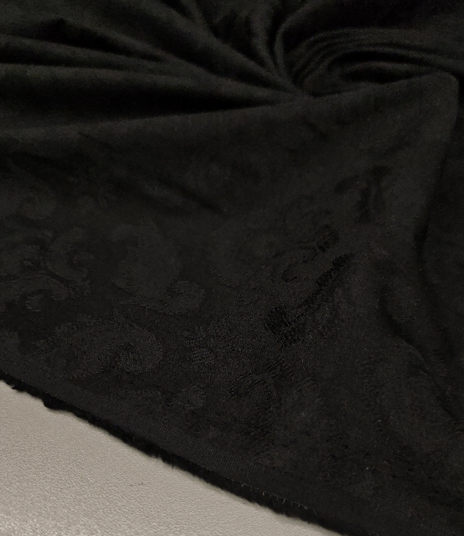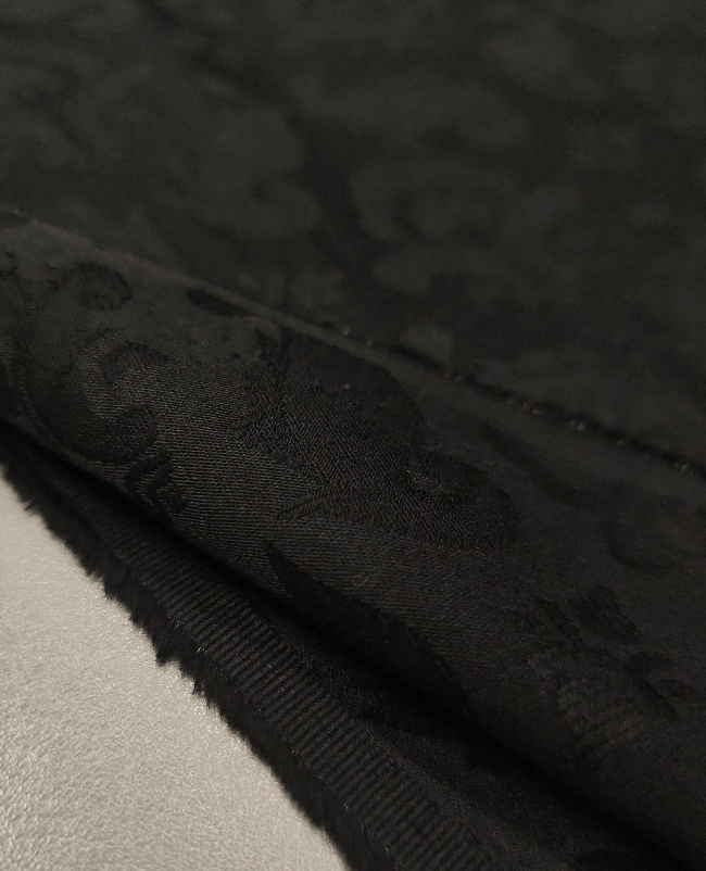 Crni pamučni žakard s klasičnim reljefnim uzorkom