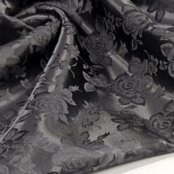 Ovaj crni žakard gustoće 150 g/m2 nudi elegantnu teksturu, idealnu za izradu odjevnih predmeta, ukrasnih elemenata ili posebnih dodataka. Svojom profinjenom strukturom i kvalitetom tkanine, vašim projektima dodaje sofisticiran izgled. Cijena za 3 m/28,50 €