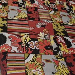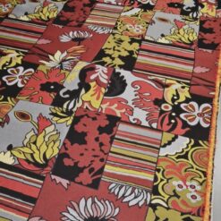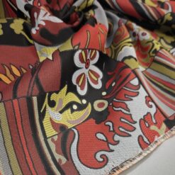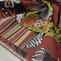 Ovaj žakard je vrlo prikladan za odjevne svrhe, gdje se ističe bogatim orijentalnim patchwork uzorkom u crvenim i zlatnim tonovima. Struktura materijala omogućuje lijepu siluetu i elegantan izgled, pa je prikladan za jakne, kapute, suknje, prsluke i izražajne modne proizvode s jakim vizualnim utjecajem. Tkanina izgleda prestižno, stabilno i kvalitetno, što je jasno vidljivo na prvi pogled.