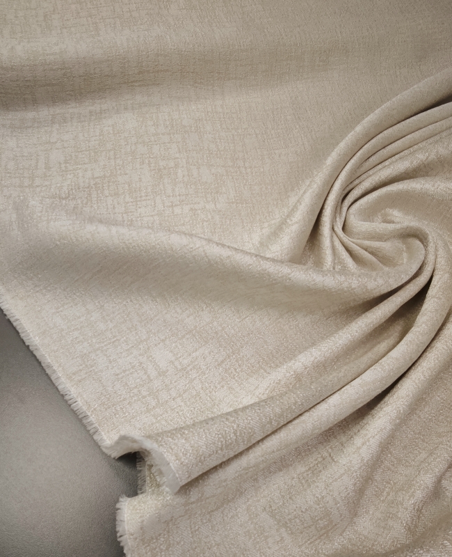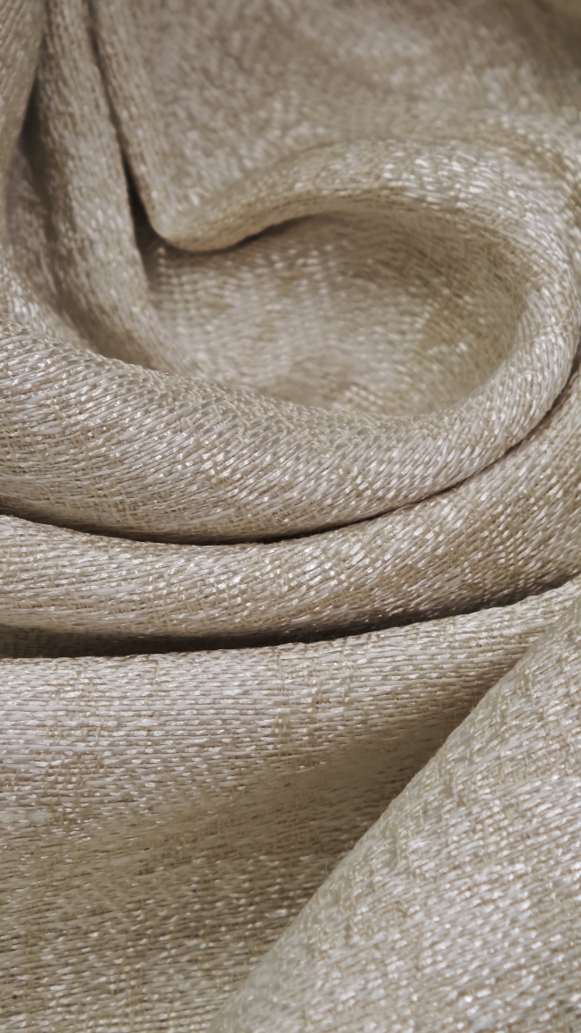 Raskošna tkanina u profinjenoj šampanj boji s blagim sjajem donosi dozu elegancije i topline u svaki prostor. Mekana je na dodir, lijepo pada i lako se održava, što je čini savršenim izborom za razne dekorativne projekte.