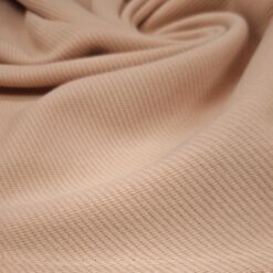 Tkanina u marelično-ružičastoj nijansi djeluje toplo, mekano i izrazito zimski. Blago naglašena struktura daje materijalu dubinu i lijep izgled čak i kod jednostavnih krojeva, pa je prikladna za modele gdje boja i tekstura igraju glavnu ulogu.