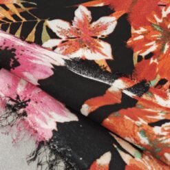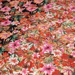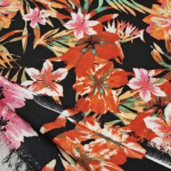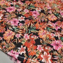 🌷 Neprozirni žoržet Tropicana s cvjetnim obrubom – tropsko cvijeće (105 g/m²) 1 m / 4,50 €